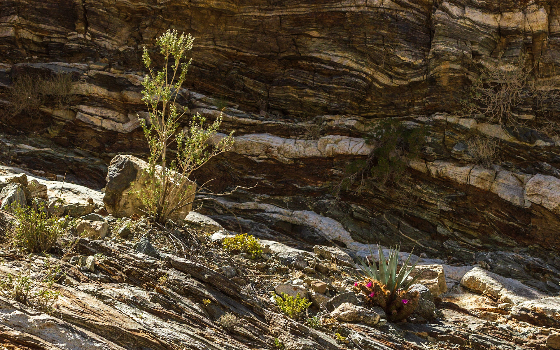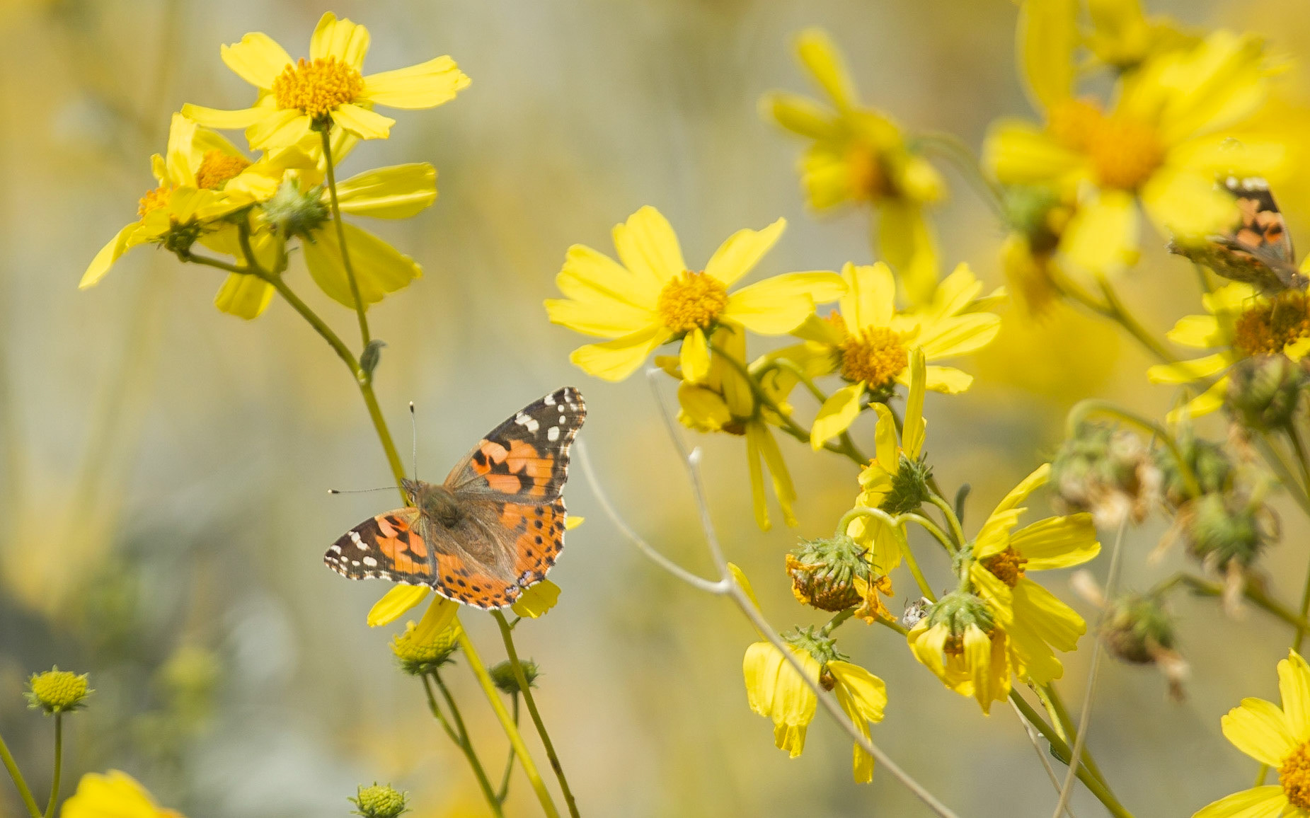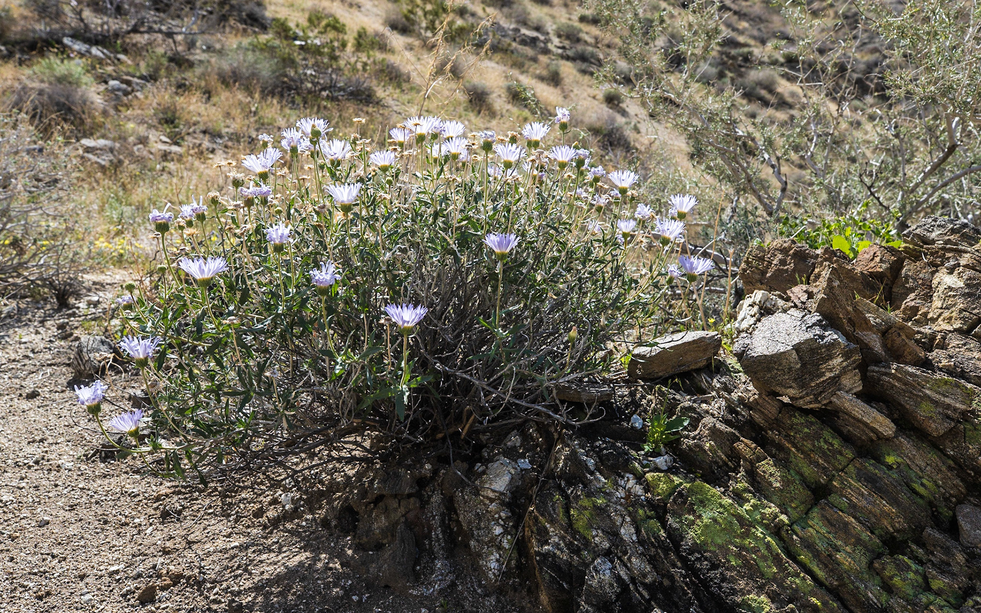 Common Side-blotched Lizard (Uta stansburiana), Brittlebush (Encelia farinosa)